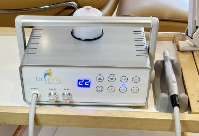 専用のマシンを使用し、爪の状態を確認しながら少しずつ厚みを整えていきます。